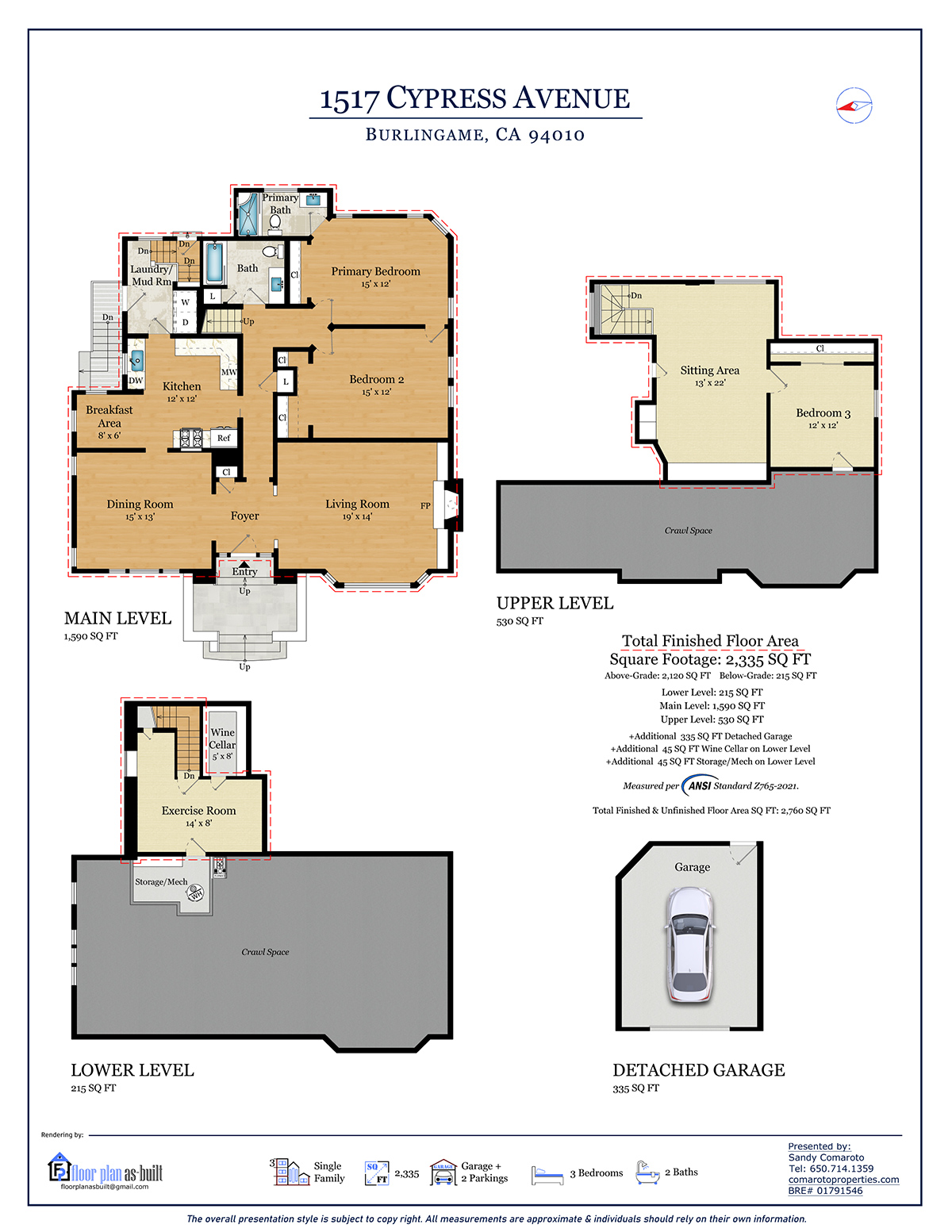 - MLS totals 2,080 sq ft; tax records total 2,400 sq ft; paid marketing vendor totals 2,335 sf ft. (buyer to satisfy themselves as to total square footage)